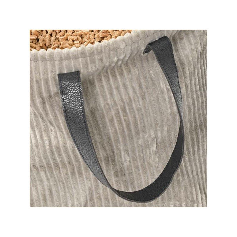 DUVEO est une corbeille à bûches et granulés de bois en velour, doublure en polycoton noir que l’on peut porter à la main avec ses poignées afin de transporter facilement ses bûches de bois et ses pellets.