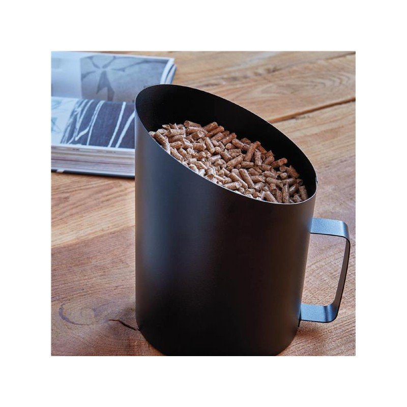La poignée ergonomique permet une préhension facile de deux kilogrammes de granulés dans les rangement à granulés de type BLEND ou FELT, VILLA ou PALASS.